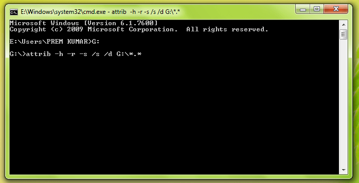 • Write attrib -h -r -s /s /d {driveName}:*.*
